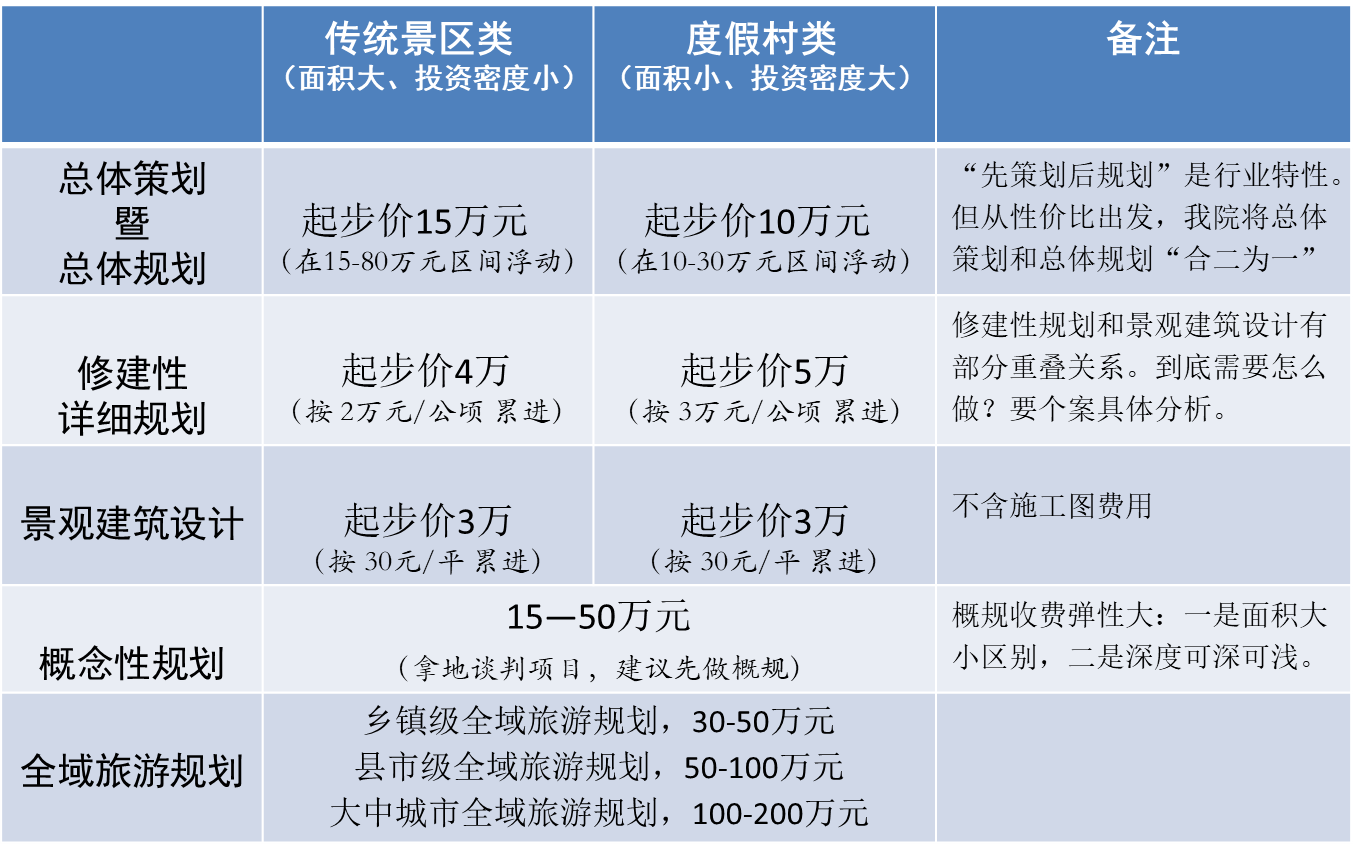 首先必須說明,旅游規(guī)劃收費(fèi)并無所謂的“標(biāo)準(zhǔn)價格”,但很多客戶還是表示希望“知根知底”,所以至道規(guī)劃院就結(jié)合多年經(jīng)驗及行業(yè)...